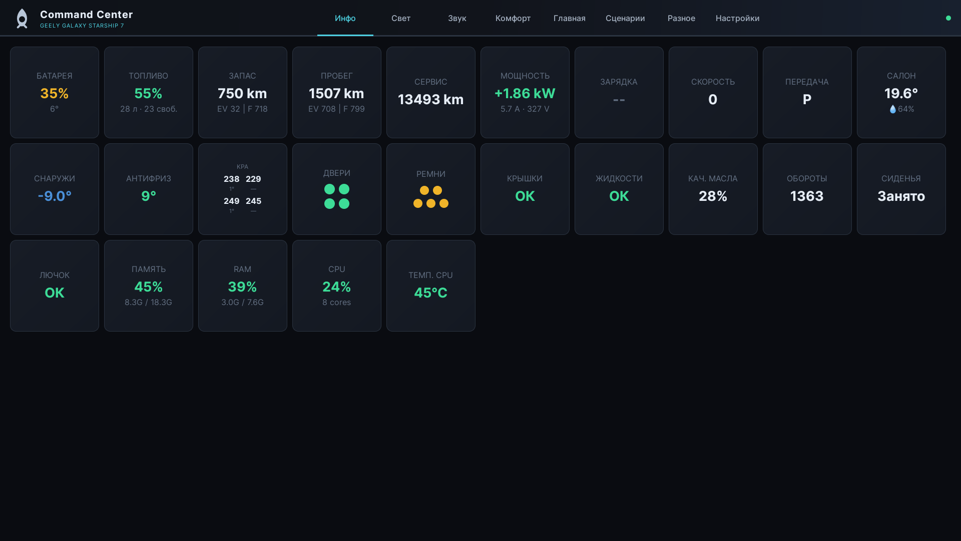 Как посмотреть температуру антифриза на Geely Galaxy Starship 7?